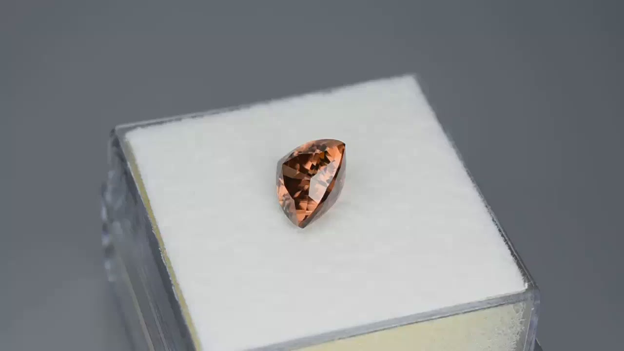 Loupe Clean, precision trilliant-cut Imperial garnet.