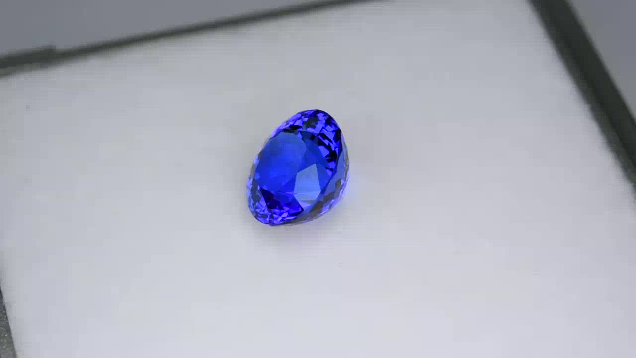 Flawless, custom precision-cut vivid purplish blue tanzanite.