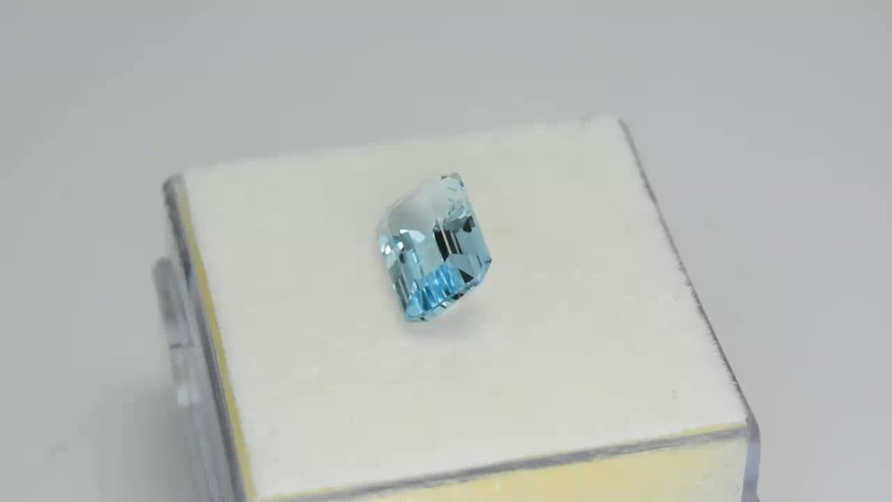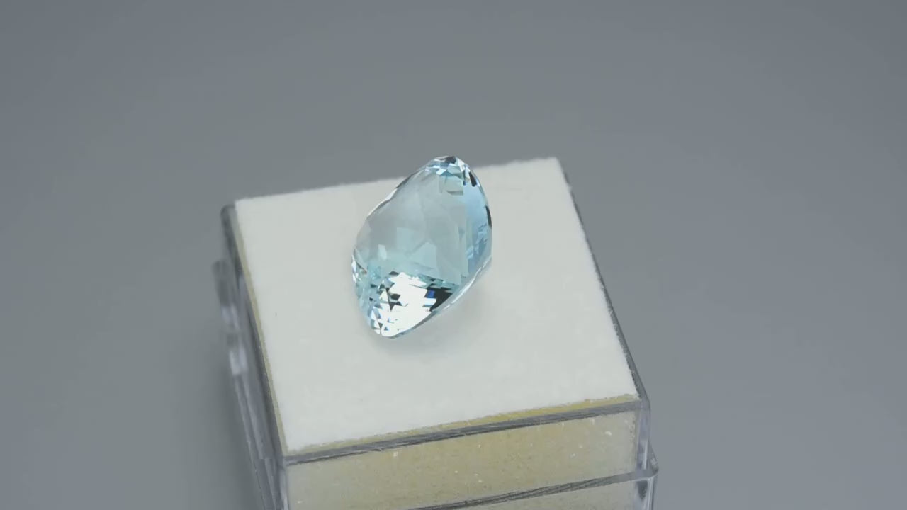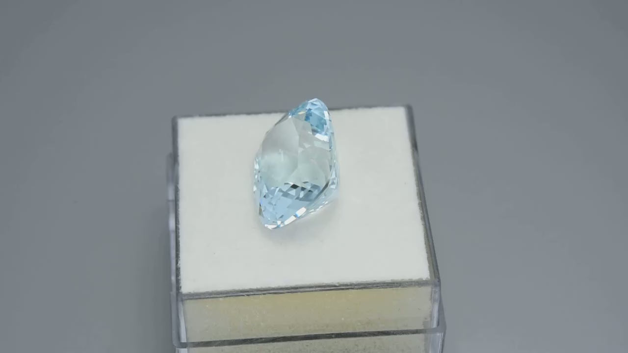 Gorgeous precision cushion-cut sea blue aquamarine.