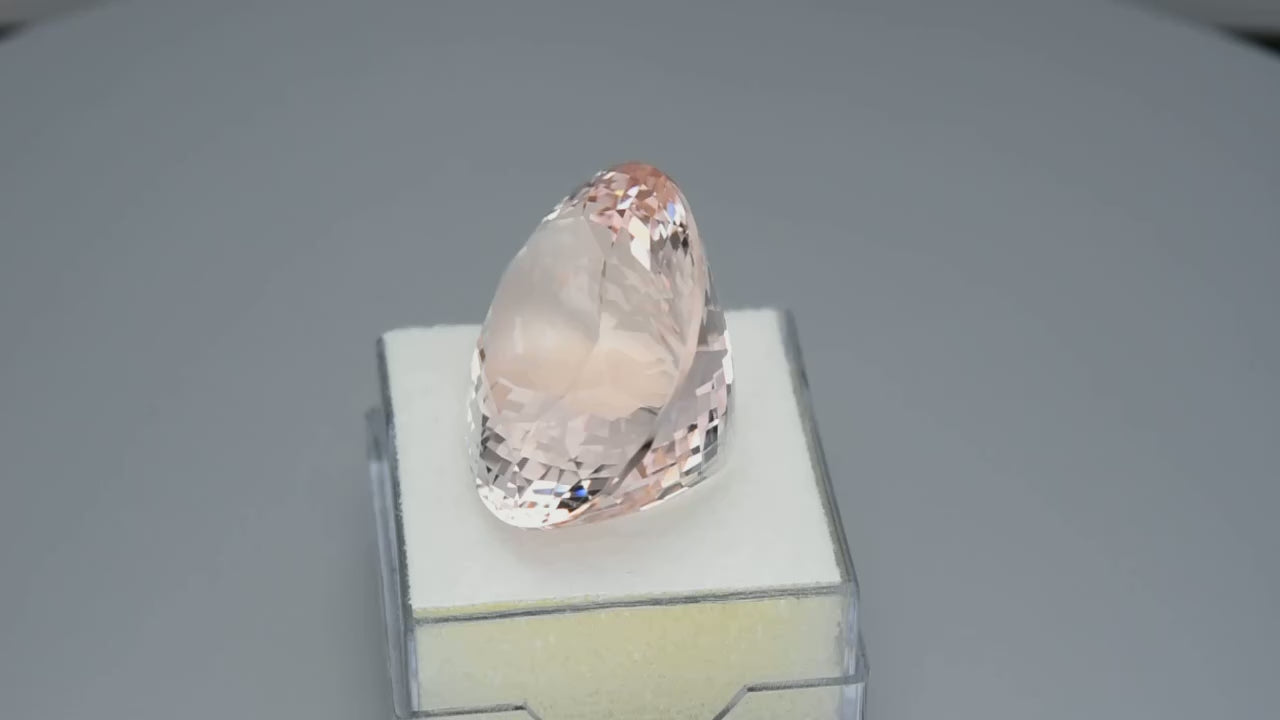 Flawless, precision oval-cut pinkish peach morganite.