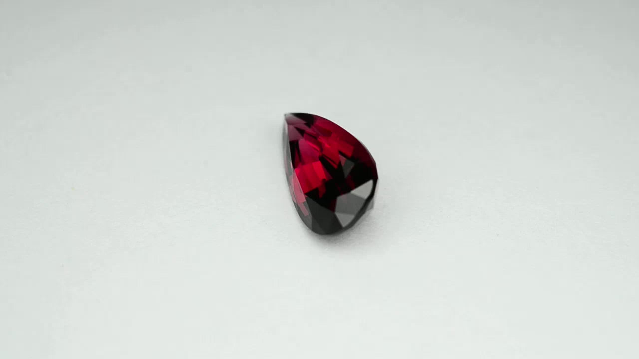 Flawless, custom precision-cut red Mahenge garnet.