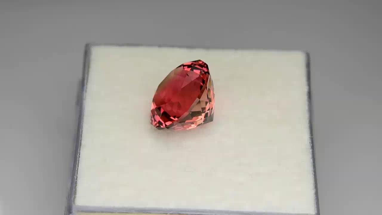 Brilliant custom round-cut Namibian orangey pink tourmaline.