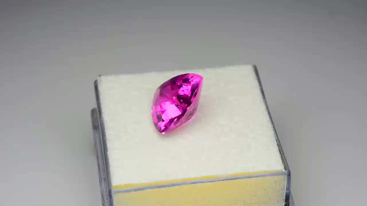 Unique gem, kite-cut fiery neon pink tourmaline.